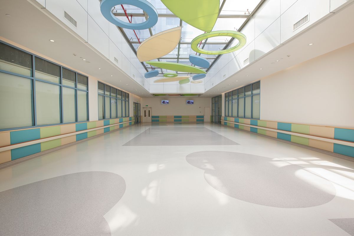 医院地面的材料有着特殊的要求,基本的专业要求都是不产尘、不积尘、耐腐蚀、防潮、防霉、防火、抗菌抑茵、易清洁。色彩要温和、淡雅,并对患者心理有平静作用,减轻患者痛苦和医护人员工作疲劳。雨辰建材的阿姆斯壮同质透心系列产品防火抗菌完全可以解决医疗领域的所有地面材料需求,表面经过特殊防滑处理可以抑制细菌生长,通体结构防火等级达B1级,质保十年以上。