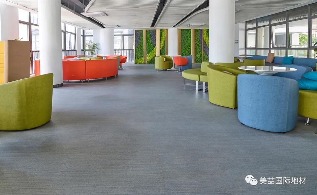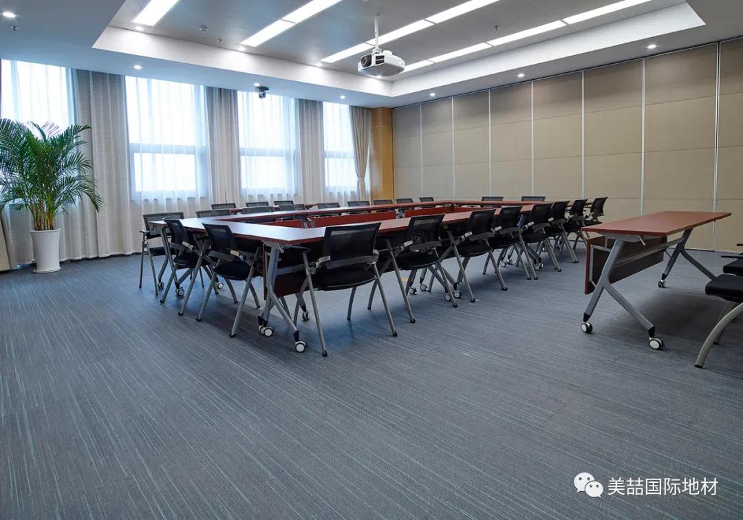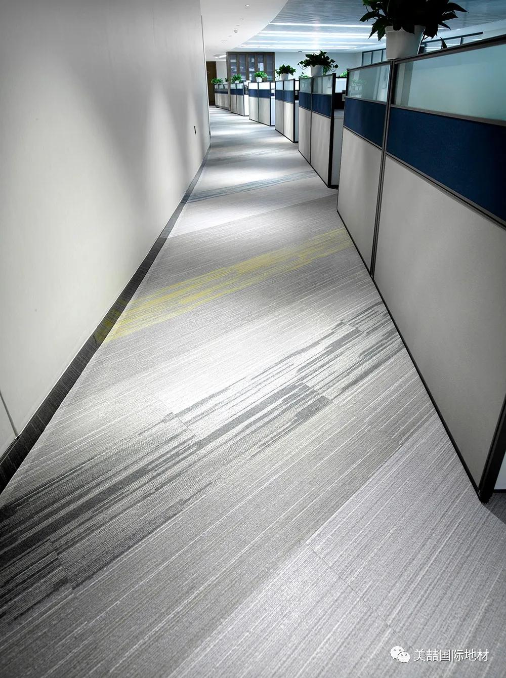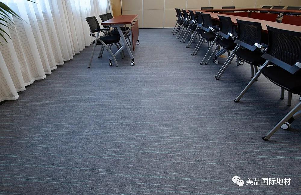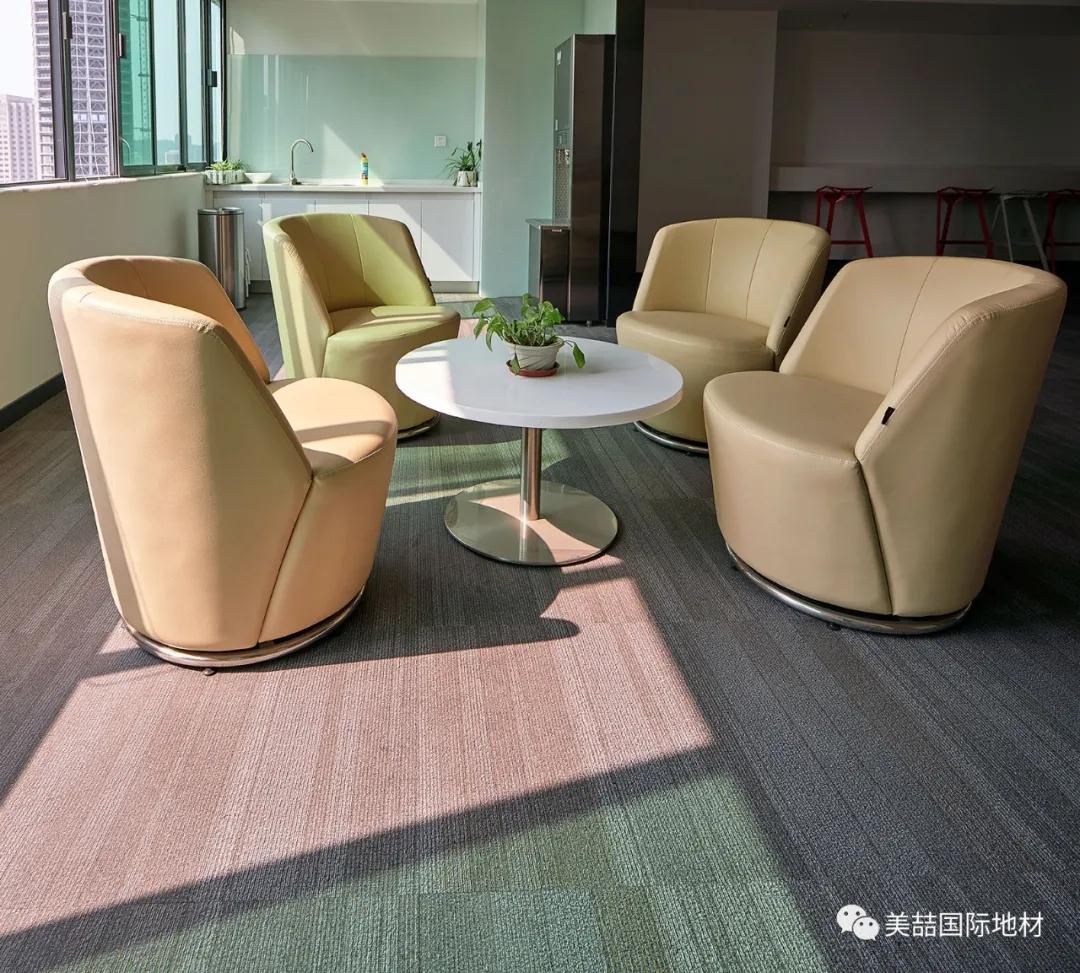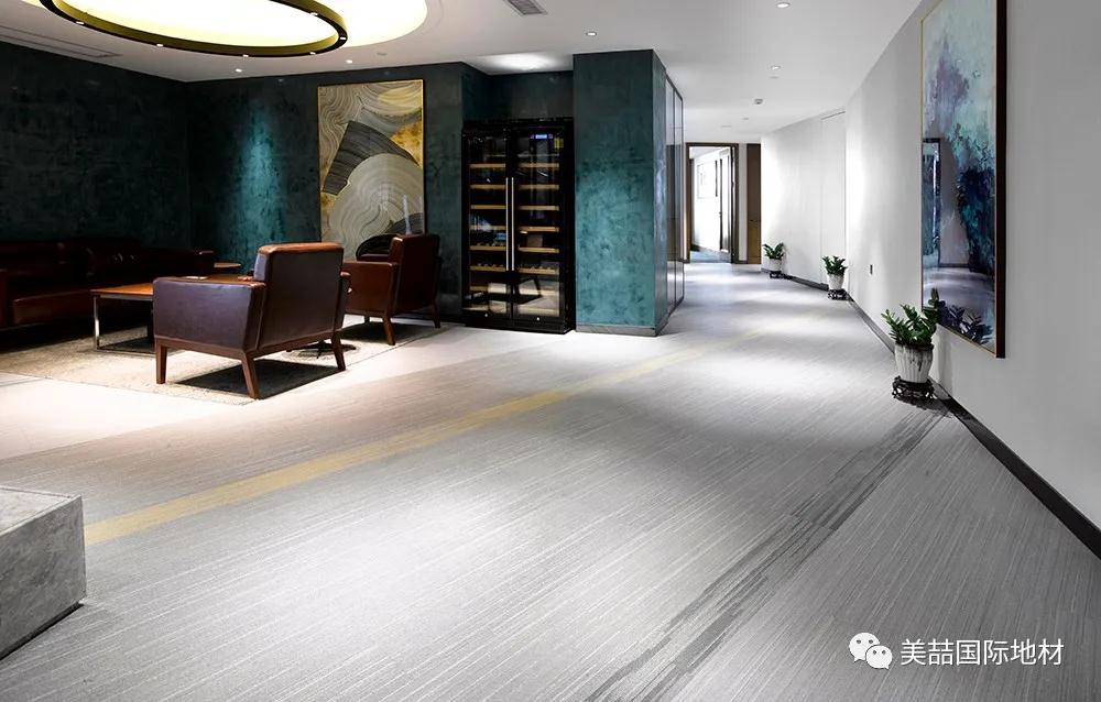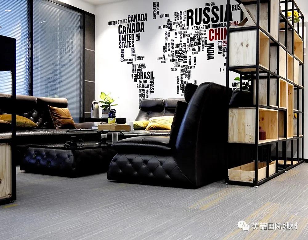 地毯纹运用在办公空间中,彰显出睿智的商务风,更显空间大气优雅。降低噪音,让办公效率升级加倍。采用大面积的整体铺装不仅能消除地面的冰凉感,还能使空间更加富有质感,加入编织的变化为办公融入舒适的暖意。
