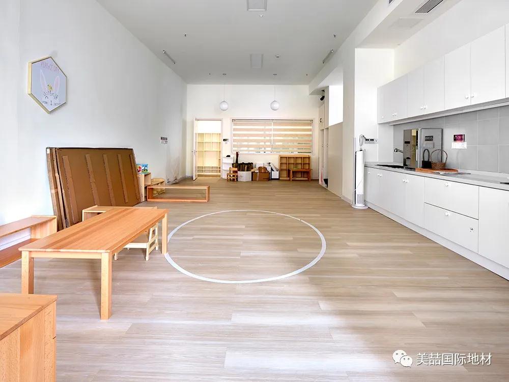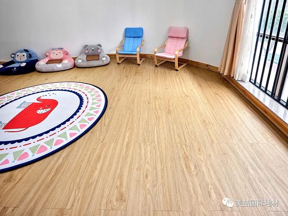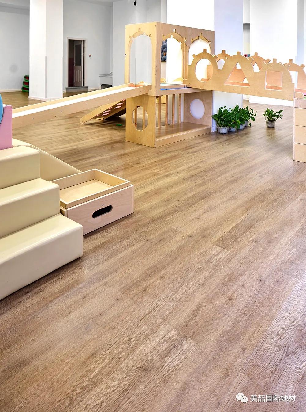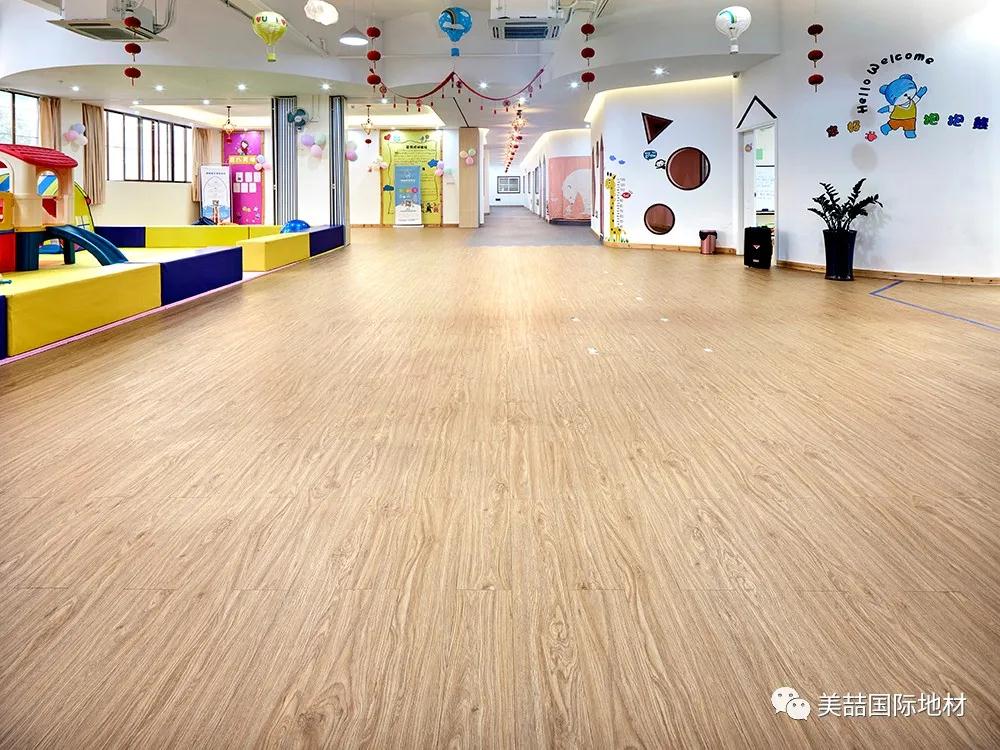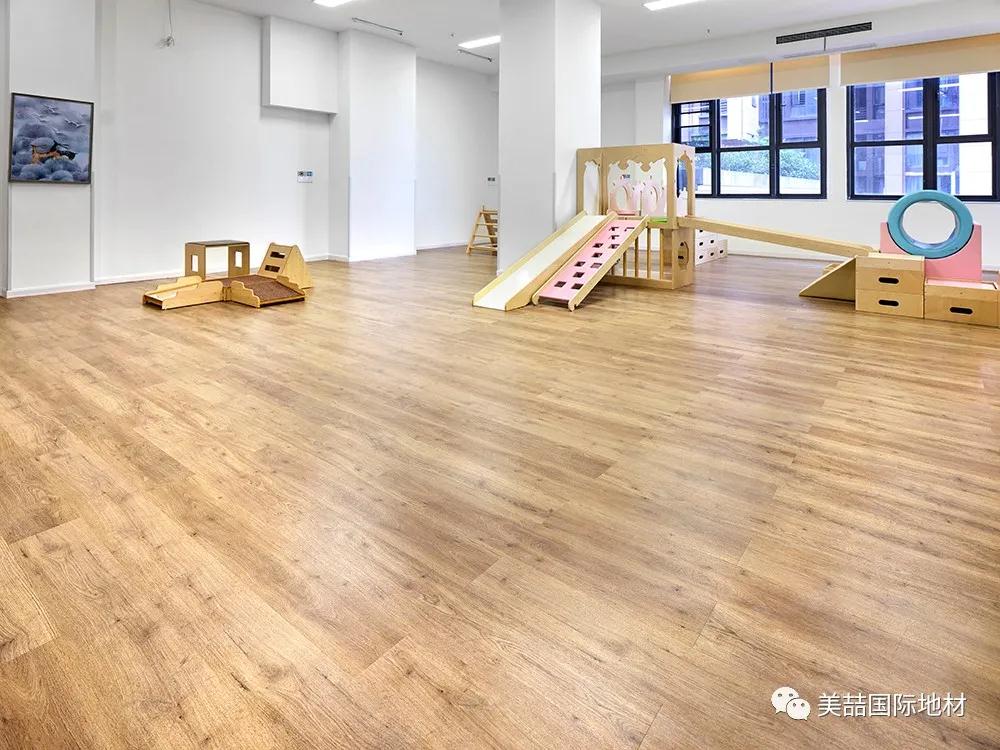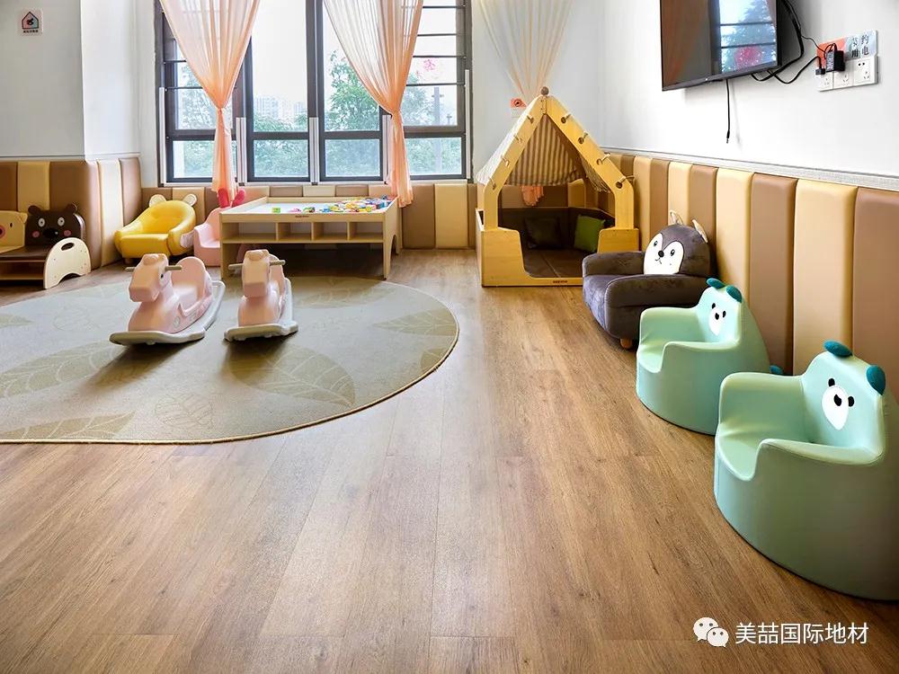 教育地板,美喆石塑地材不但具有环保无毒、防滑防潮等优异特点,值得一提的是,美喆产品表面UV 处理层添加自然银设计,使石塑地板有双重抗菌结构,满足家长们对儿童活动空间的绿色装修的严苛要求。