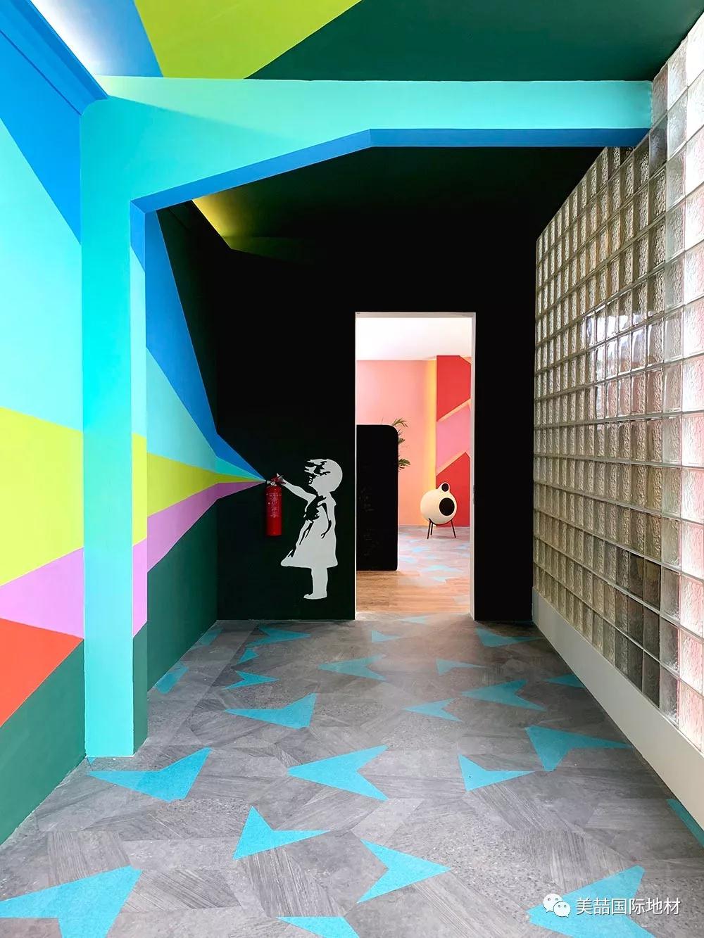 爱情公寓的主题围绕在公寓里年轻人的生活,五彩斑斓的地面及墙面设计,让整个的公寓的气氛更加活跃。