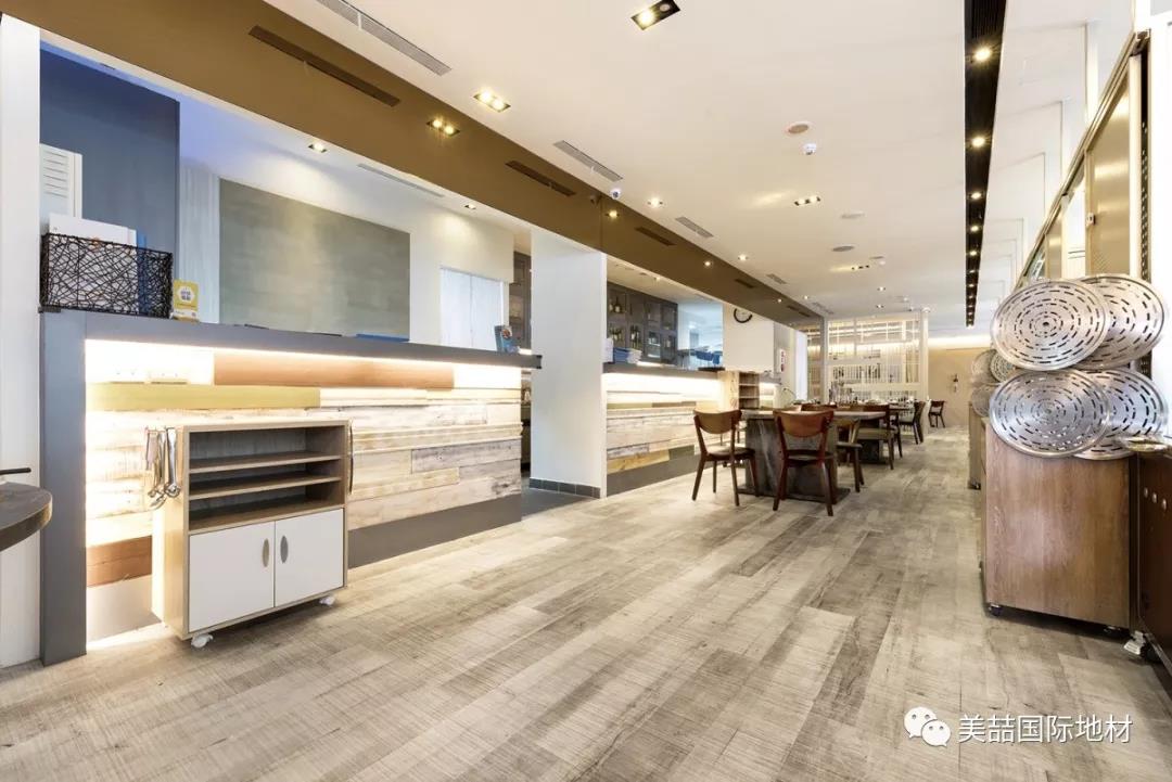 而美喆石塑地材采用特殊工艺制作,使得产品不但防滑,且表面纹理自然美观,容易营造餐厅温馨舒适的用餐氛围,在环保、实用性和性价比上远远超过传统餐厅用装饰材料。