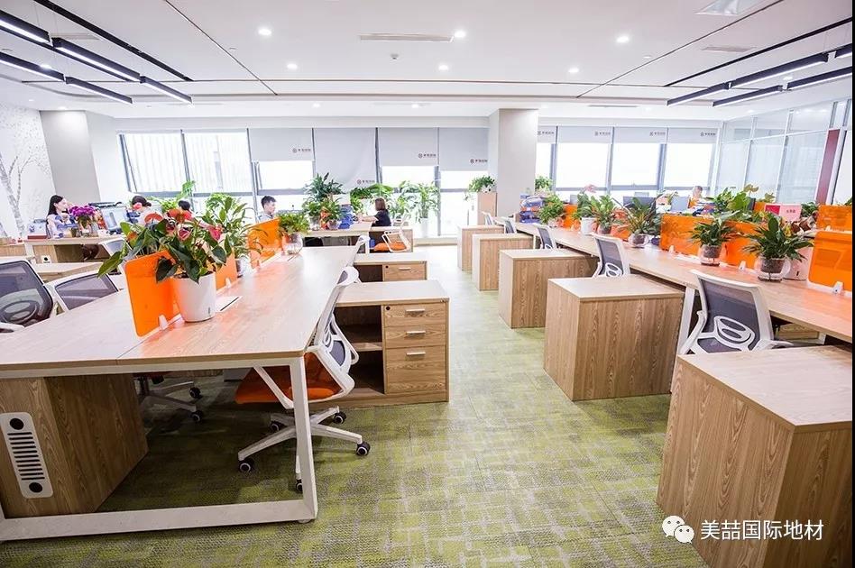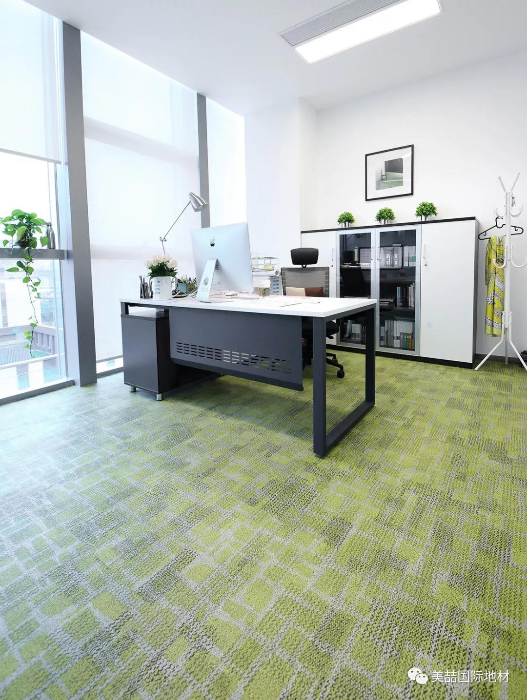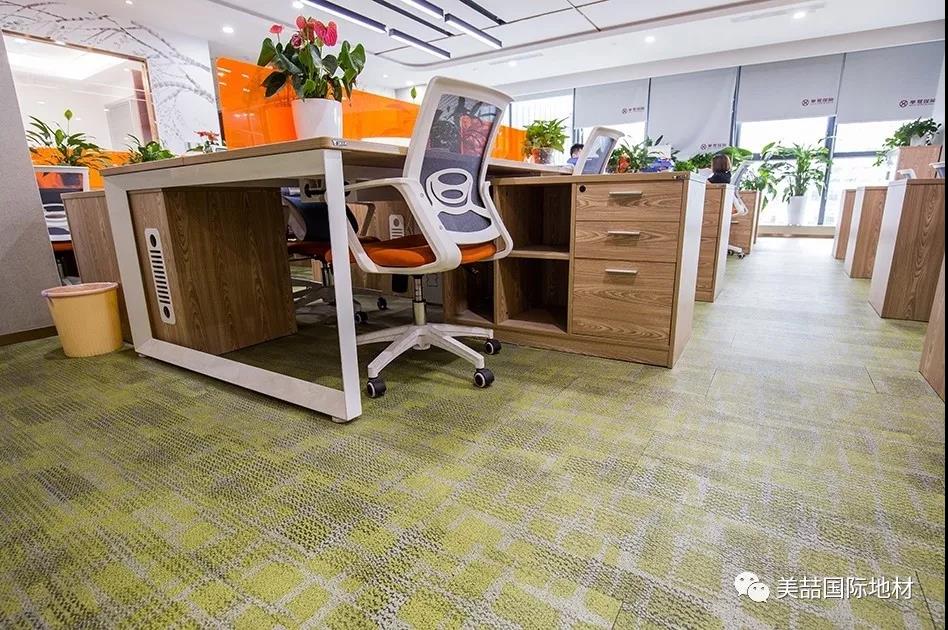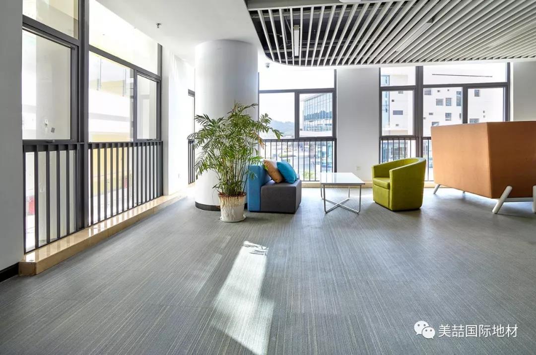在深圳城市建设的案例中,美喆采用灰色加浅色毯纹产品作为基底,展现独立办公空间的沉静商务气息。