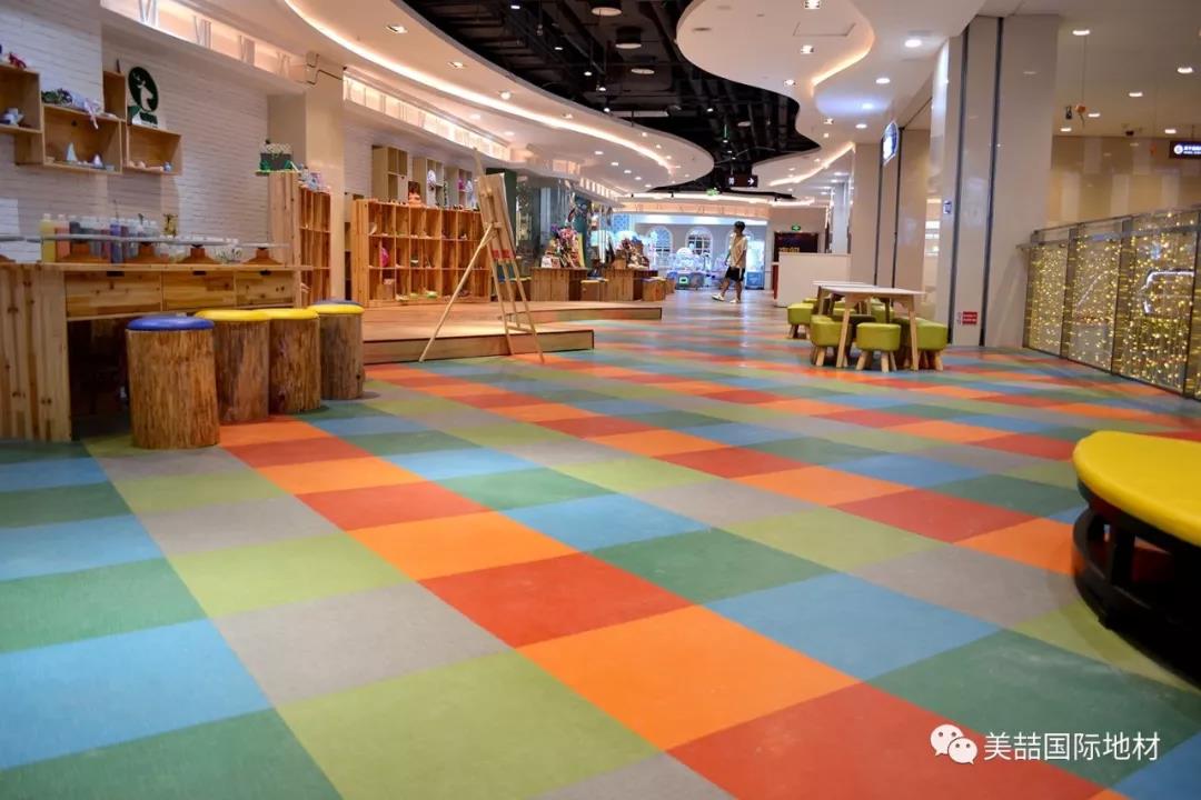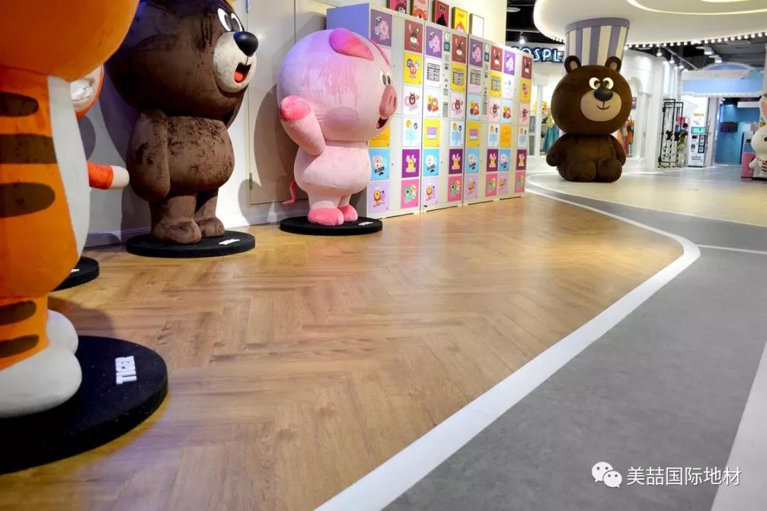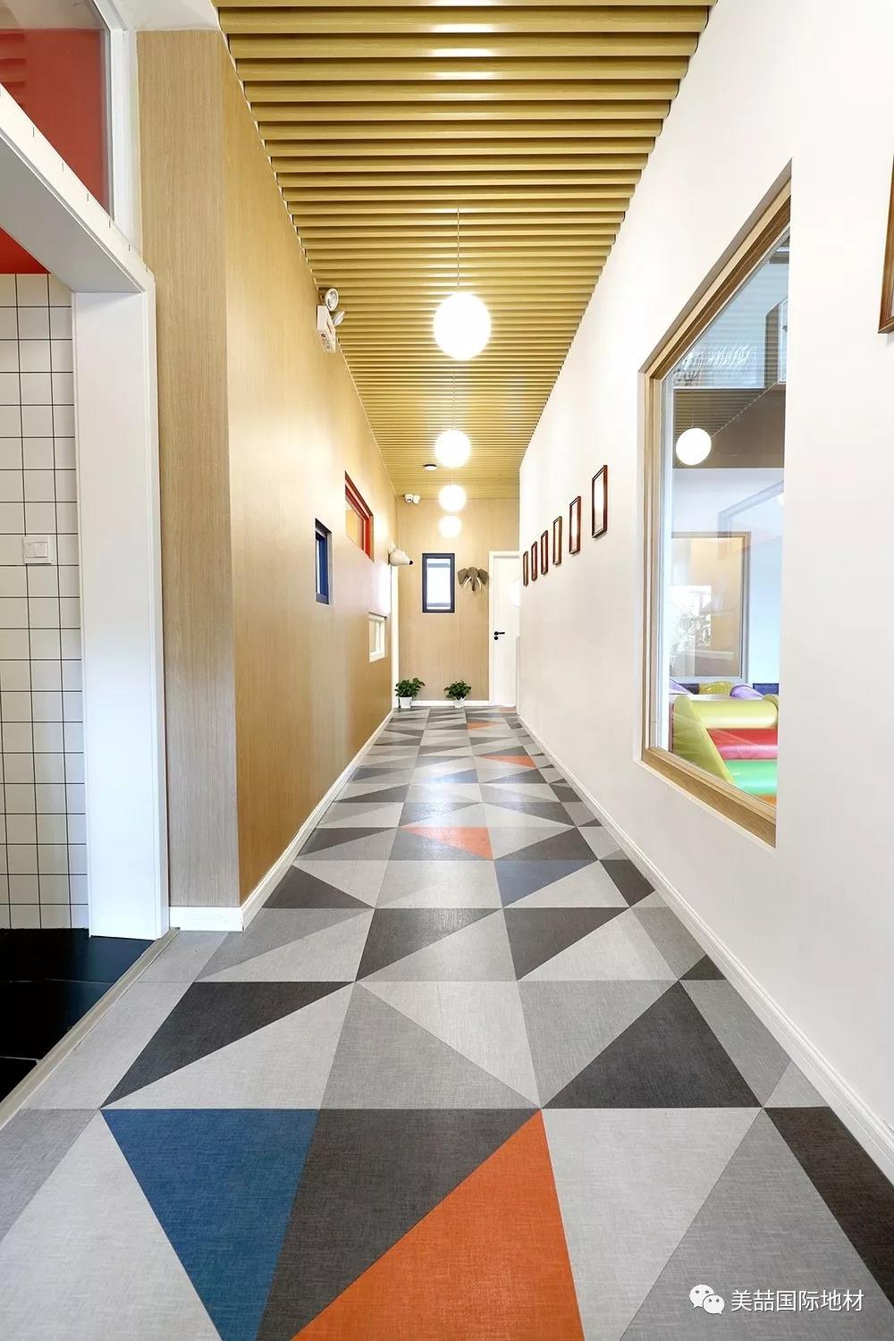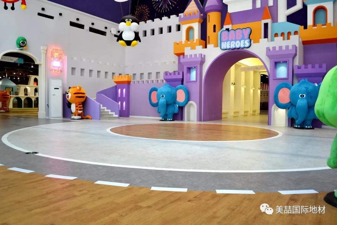 在美喆石塑地材的表面,有一层特殊的经高科技加工的透明耐磨层,不但能保证地面铺装的历久弥新,还自带出色的吸音效果,是小朋友活动量较大的早教机构的明智之选。