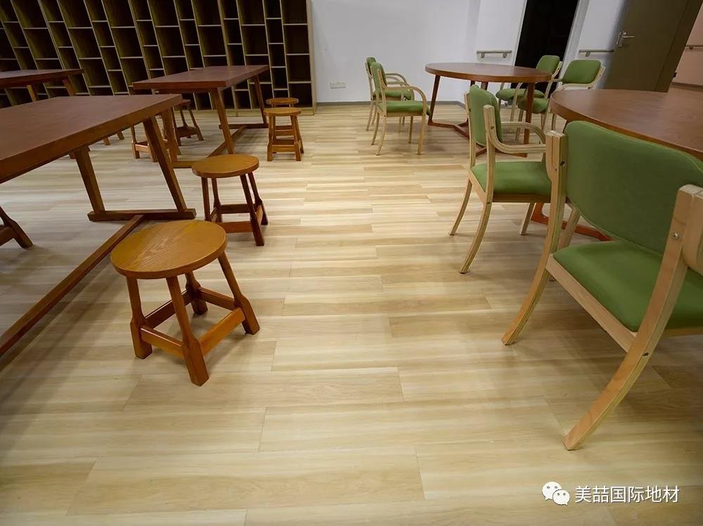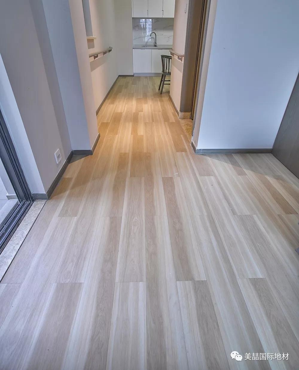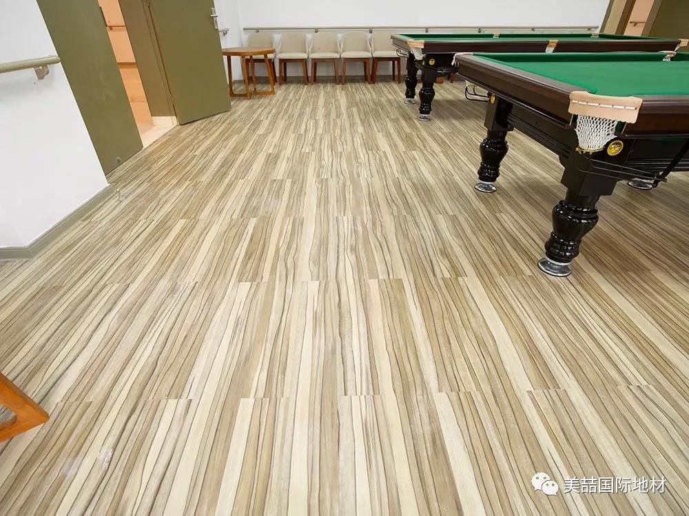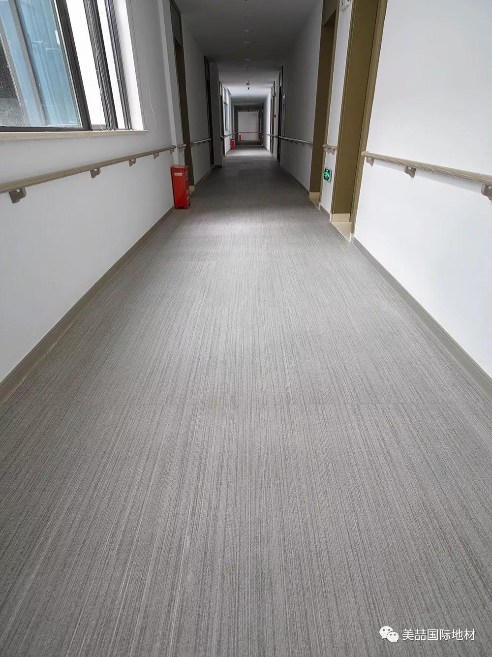应用于公共区域的美喆产品,在暖色的灯光下呈现柔软和自然的光感,并同时因为不同的纹理而产生了自然的分区效果,减少了空间分割带来的逼仄,鼓励长者们走出房间、参加活动,有利于弱化老年生活的孤独感,让长者们放松心情。