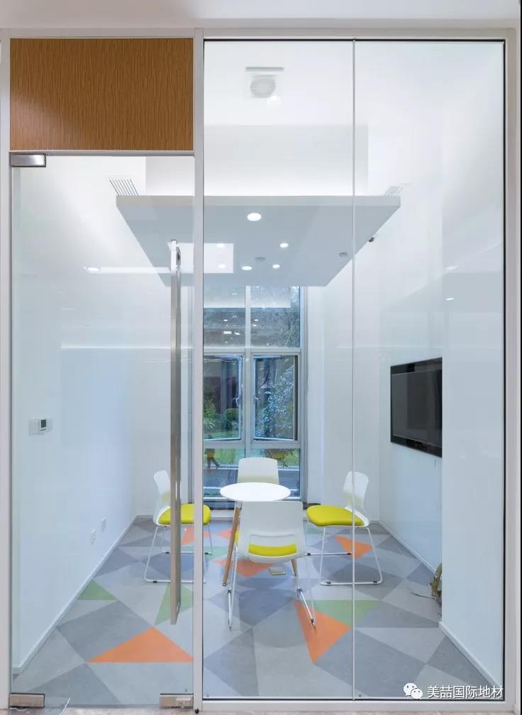 地板方面,设计师分别选择了美喆编织纹和石纹产品,打造会议室、办公区、会客室和通道等不同空间,不但让各区功能明晰,也增加了设计语言的丰富性,让不同的空间充满了独特的气质。