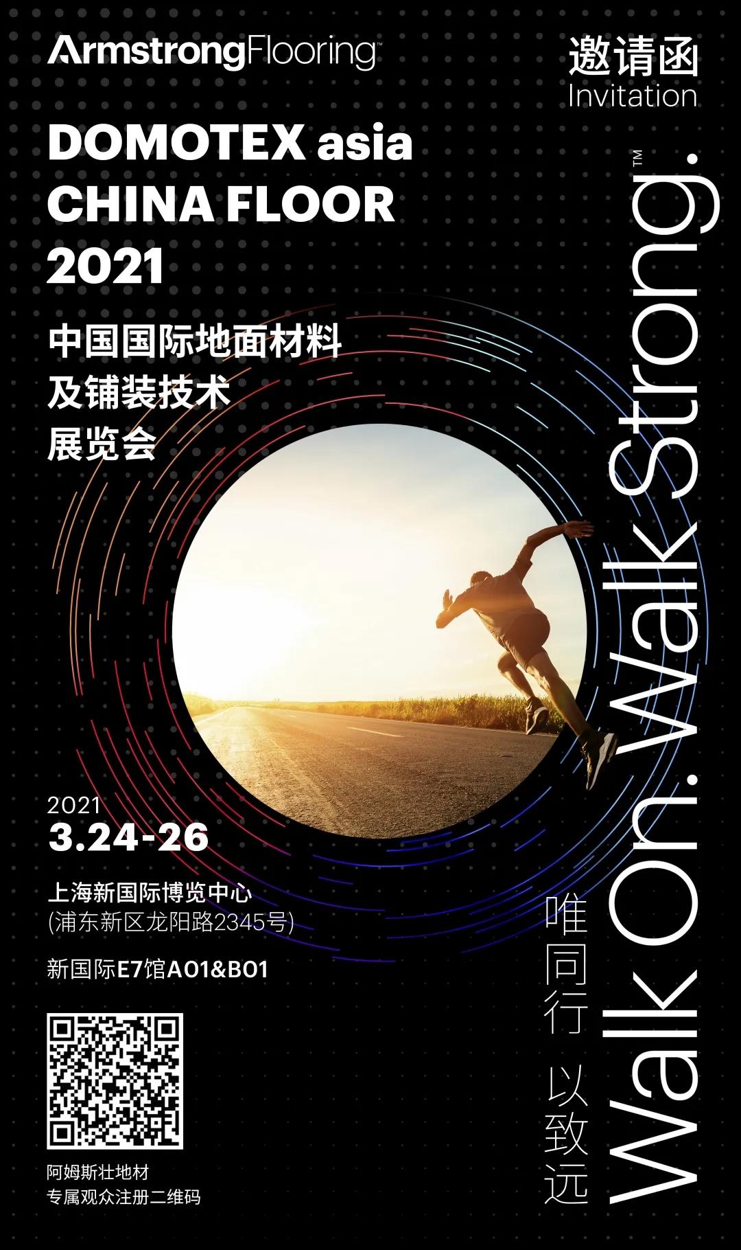 3月24-26日,阿姆斯壮地材将亮相上海新国际博览中心举行的第二十三届中国国际地面材料及铺装技术展览会,展位位于E7馆A01&B01。届时会向大家展示新技术、新设计、新产品。展位现场将会呈现以下产品:MedinPure、运动地板、5 Elements地毯、止焰板、 LVT、SPC。地材行业新征程即将开启,阿姆斯壮地材与您共同分享。